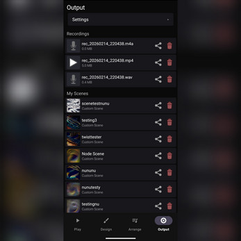 Output - Record video and audio, export your songs and visual scenes to share with other users