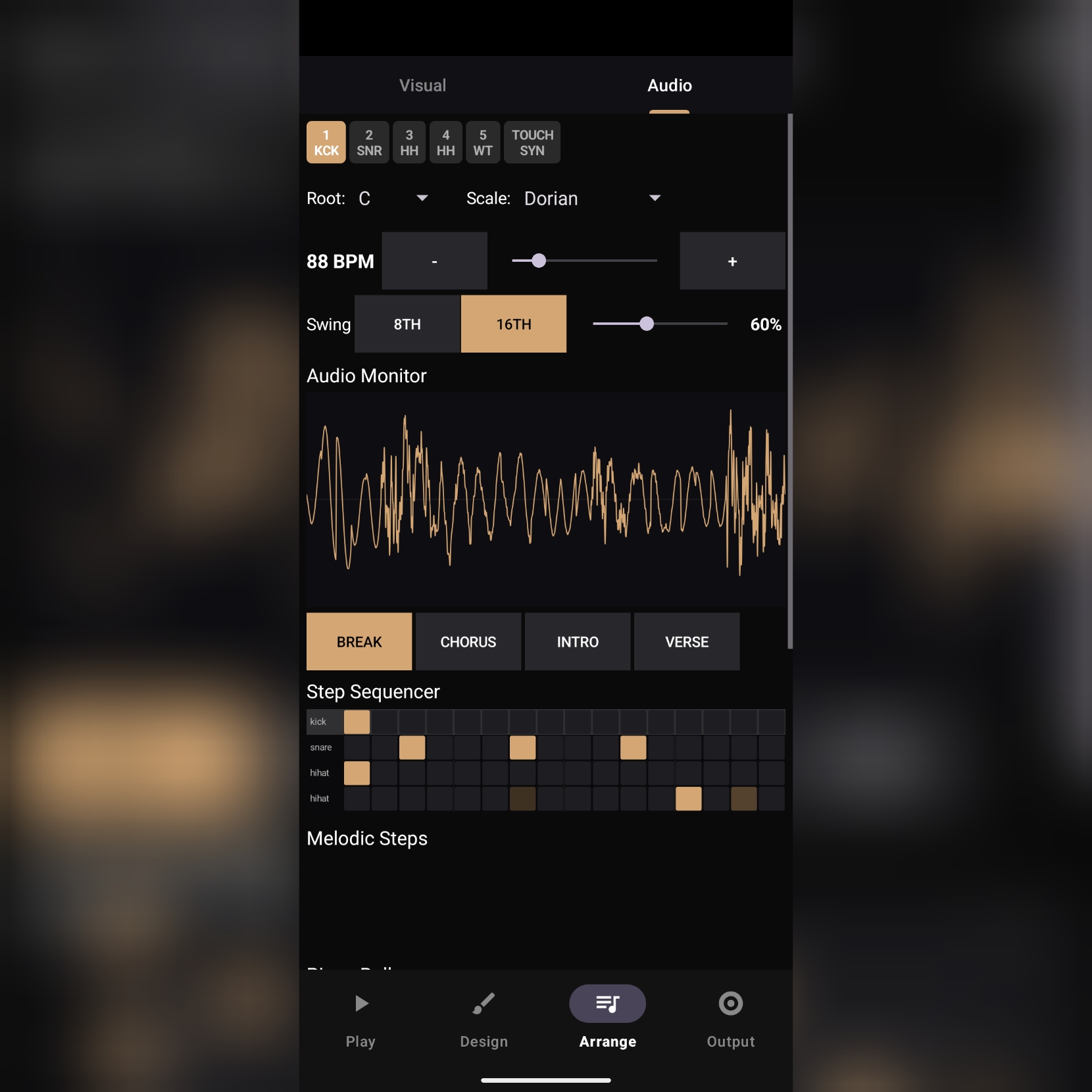 Arrange - Turn your sounds into songs with sequencers and piano rolls, and choose your visual scene here