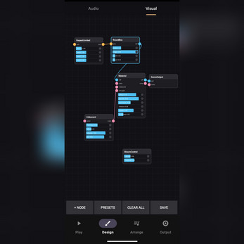 Design - Make your sounds with a Syntakt-like wavetable synth engine, and make visual scenes with a node-based GLSL sandbox